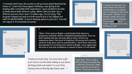 "I wasn’t able to talk about the months I was in the hospital and many things about my twins before working with Brigid. With prayer and reframing what happened, I was able to forgive myself, move on and be able to address certain things without excusing myself from the room. I am able to see the bright side in what happened, finally stopped blaming myself for my twins being in NICU, accept what happened as either God’s plan for me or an opportunity to offer up what wasn’t His plan for me as a means of sanctification." - Anne N., mom who came to work with me after having twins + 3 other young children