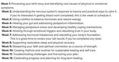 I’ve seen dozens of women completely transform their lives after experiencing [birth] trauma. With my program, I’ve helped countless moms reclaim their health, their strength, and their confidence through my holistic approach - healing not just the mind, but the body and spirit as well. I’ve walked this path myself, after my own traumatic birth experience. I know what it’s like to feel disconnected, lost, and scared. But, through understanding my body’s design and finding peace with my experiences [through Jesus], I reclaimed my health and happiness. Now, it’s my mission to help other moms do the same.